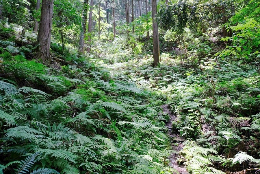 役行者への分岐を行く。下草が密集している。