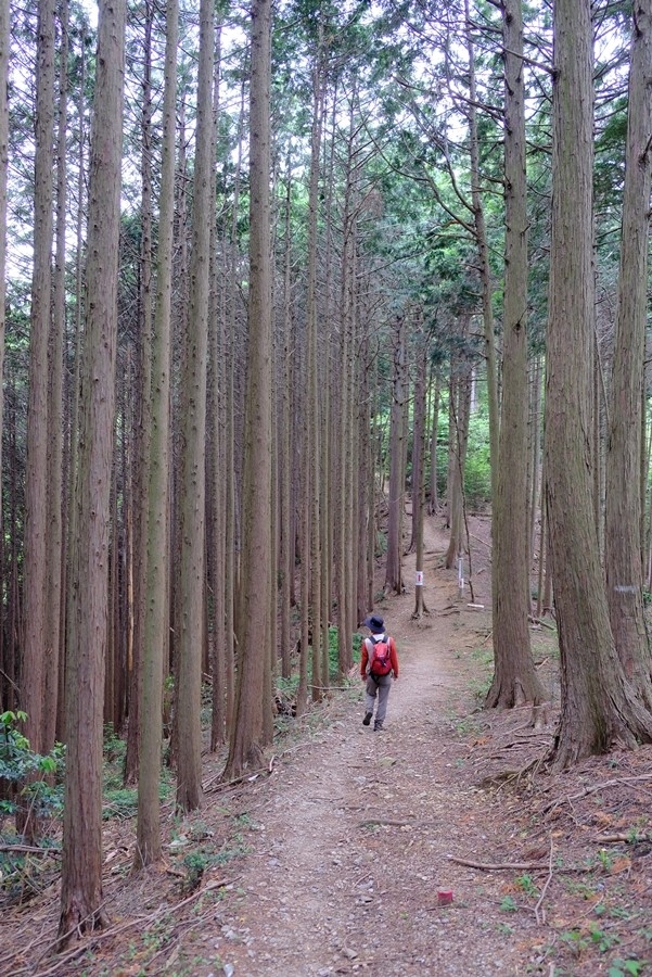 杉木立の中を行く