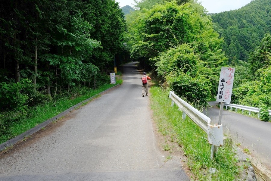 高山不動尊方面の車道を進む(途中で右に入る山道あり)