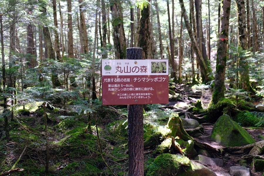 丸山方面と白駒池の分岐(帰りは白駒池方面からここに戻ってくる)