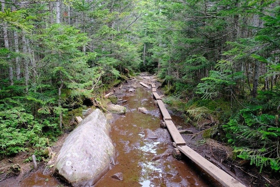 傾斜が終わると、水たまりの横に木道が出てくる。