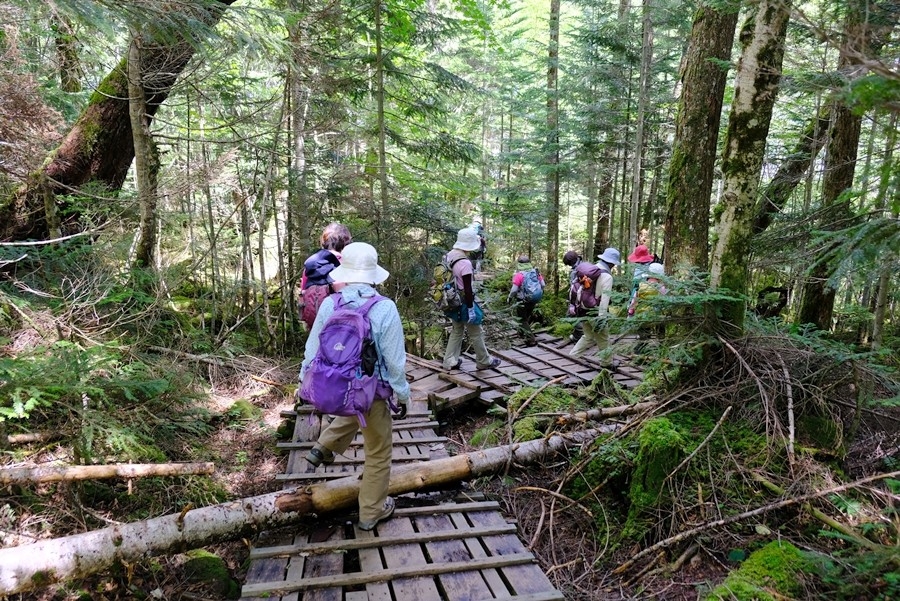 どんぐり山行会8月例会は北八ヶ岳の麦草峠から丸山、白駒池を回って麦草峠に戻るルートです。