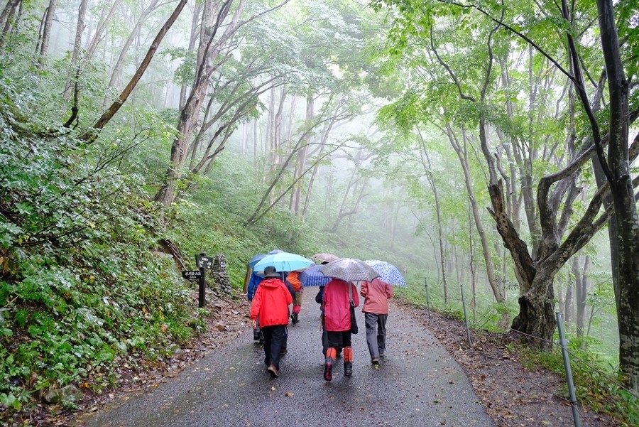 はたして、雨が振り、ガスで何も見えない天神平の状況を再確認して、一ノ倉沢トレッキングコースを歩くことにした。