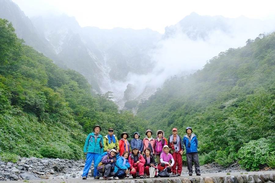 一ノ倉沢をバックに記念撮影
