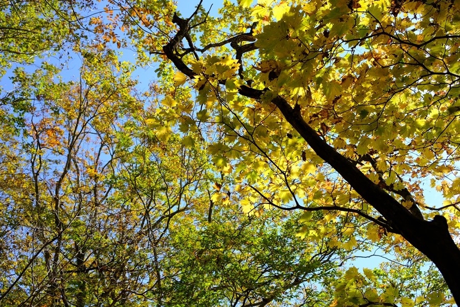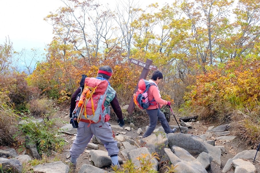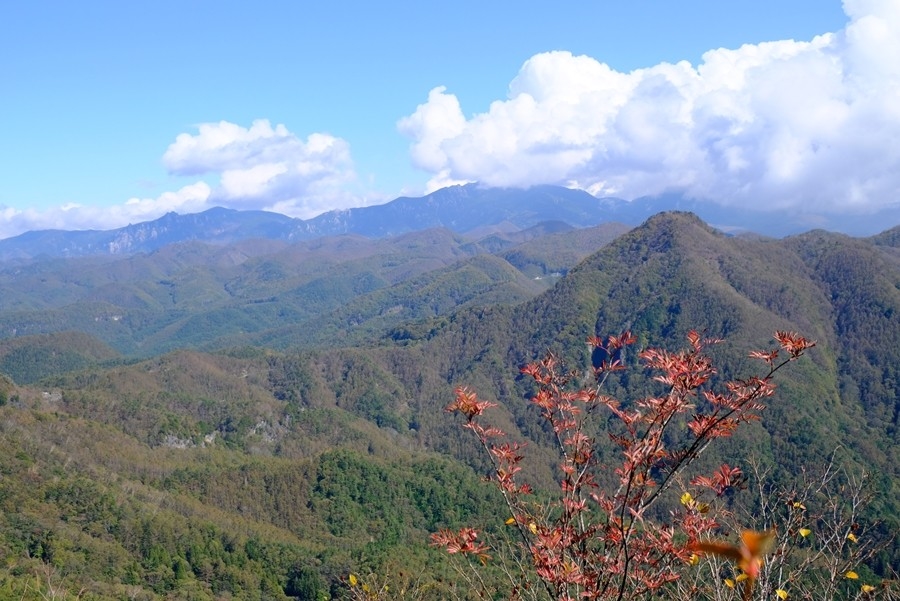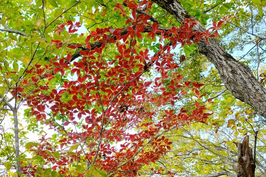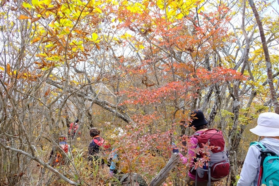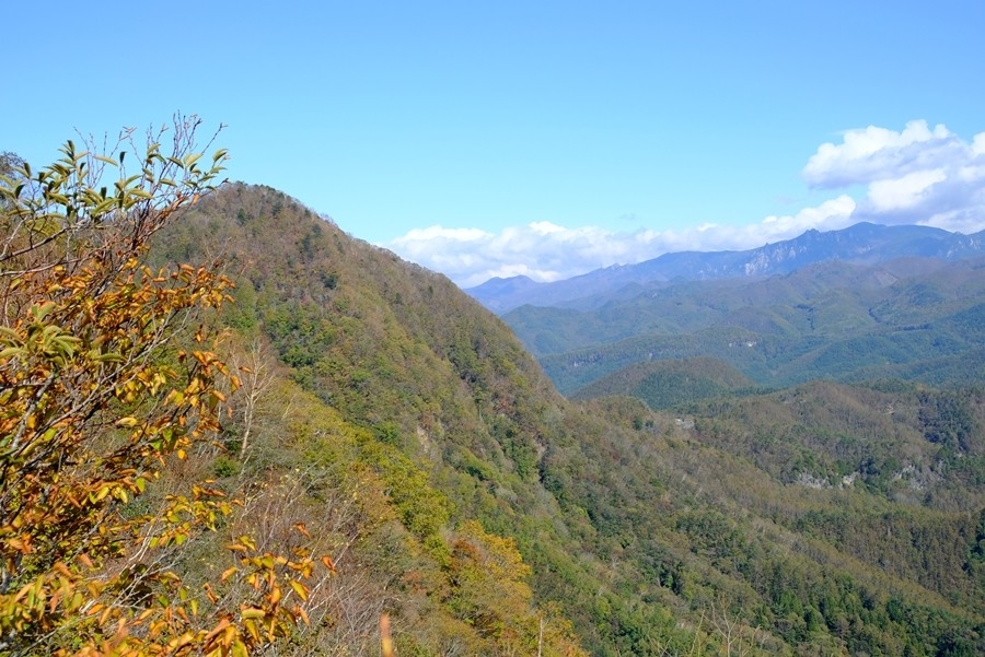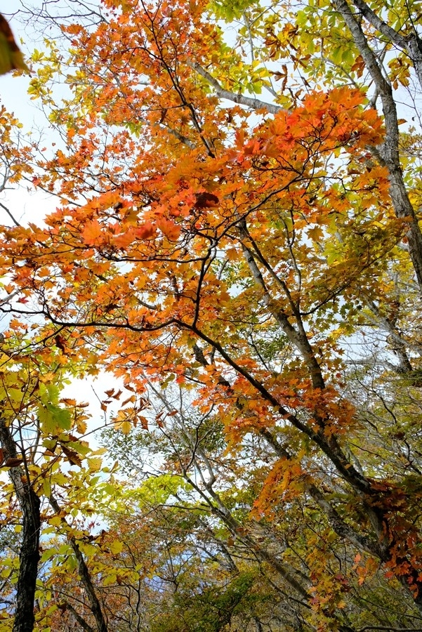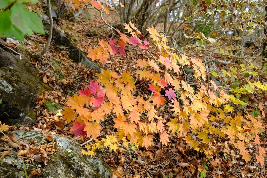 麓は緑が多い状況だが、標高1,500mくらいではいい感じの紅葉がみられた。