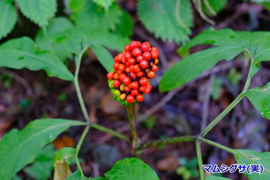 登山道の沿道にはマムシグサの赤い実が目立った。