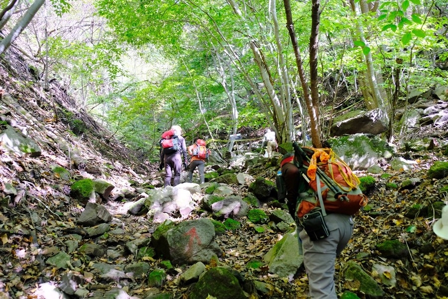ゴロゴロの岩場が終わって、ちょっと安心したあたりだが女岩をいつの間にか通り過ぎていた。