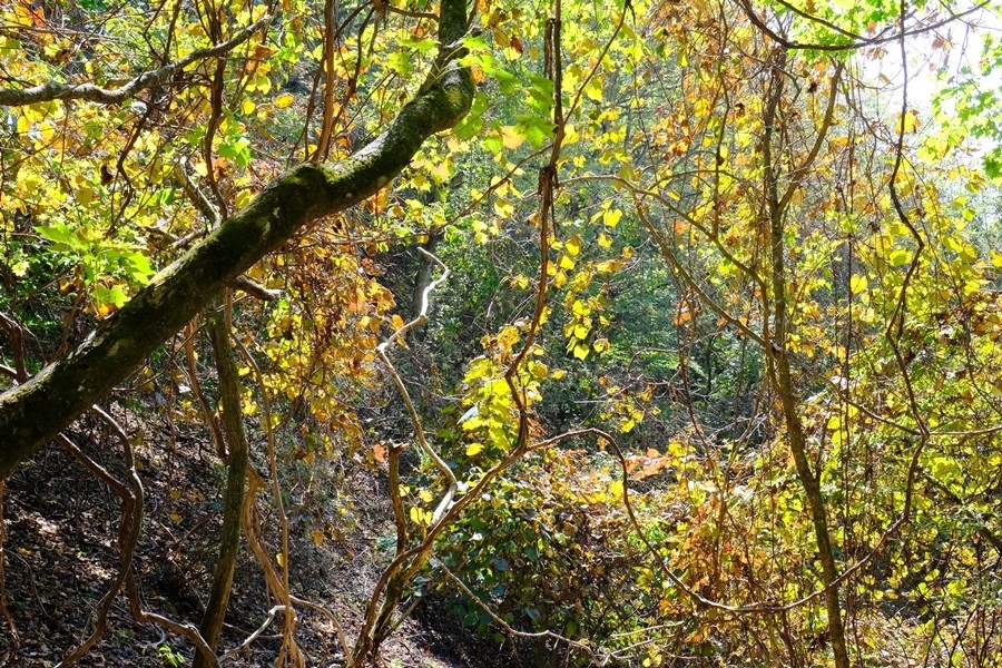 この辺りには山葡萄の蔓が沢山あり、葉の紅葉がきれいで手の届かないところに実が成っていた。