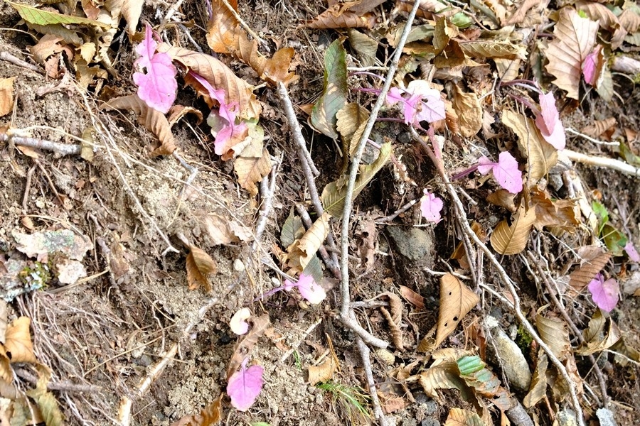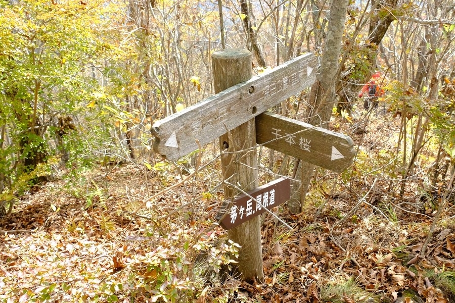 10分で千本桜分岐に着くが、千本桜方向の道はほとんど獣道のようで行くのが怖いようだ。