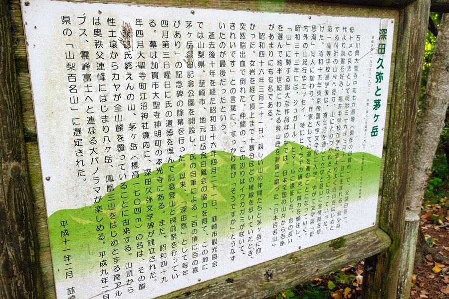 コースは、深田公園駐車場~分岐~女岩~女岩のコル~深田久弥終焉の地~茅ヶ岳頂上(昼食)
