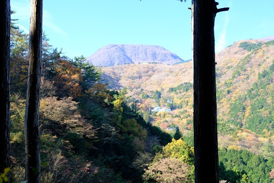 木の間から箱根外輪山が見える。
