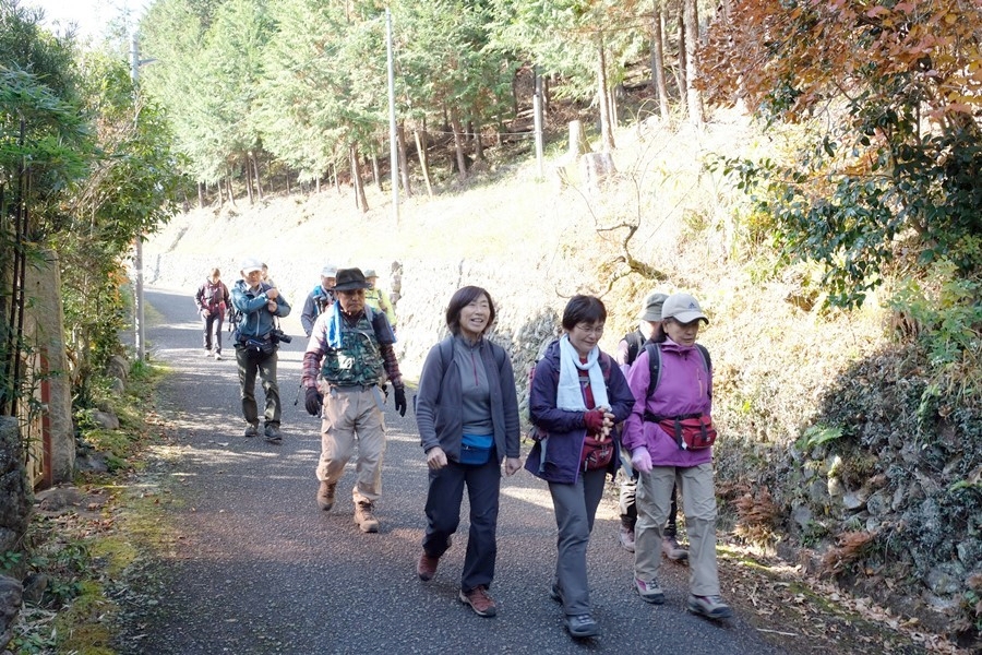 トイレや身支度調整後舗装道路を登山口に向かって歩く 10時10分