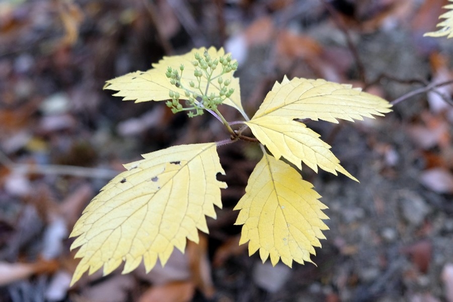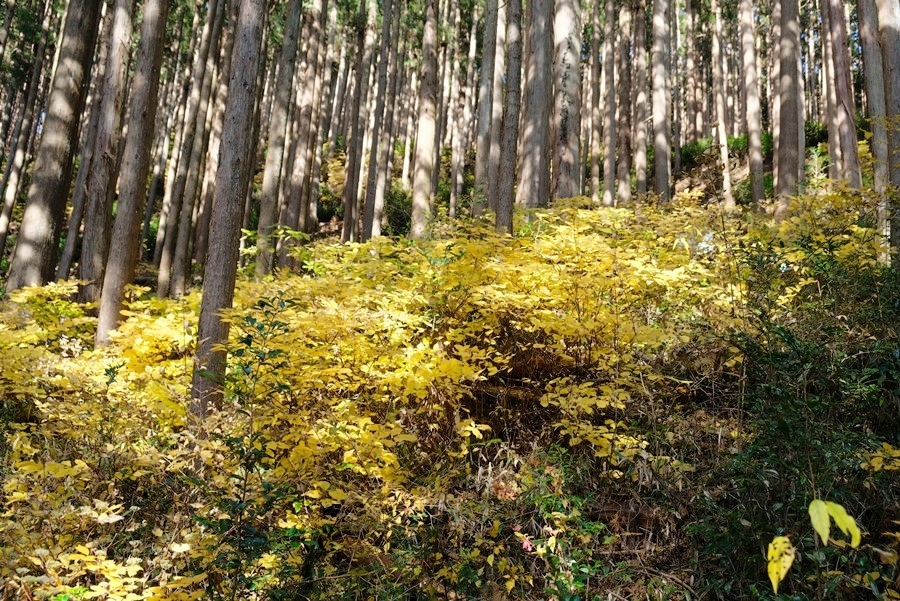 周りにはコアジサイが綺麗に黄色くなっている。