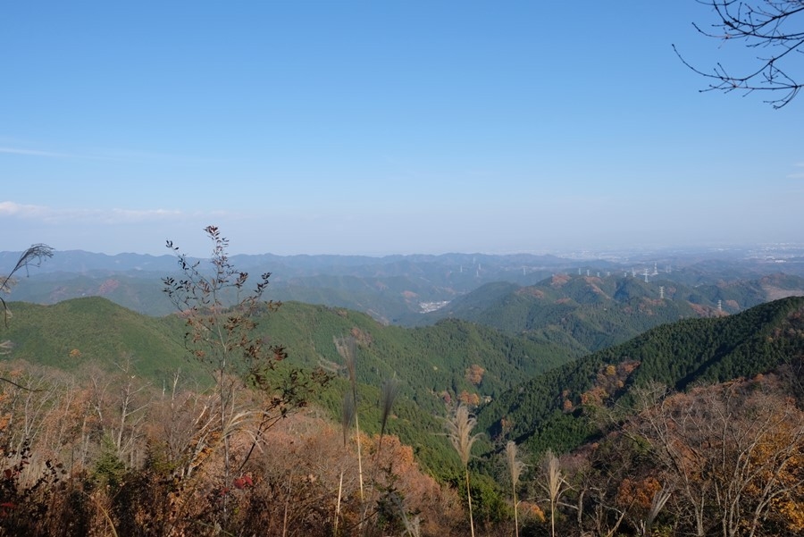 紅葉真っ盛り、しかも晴天で岩茸石山山頂からは各方面がきれいに見渡せた。