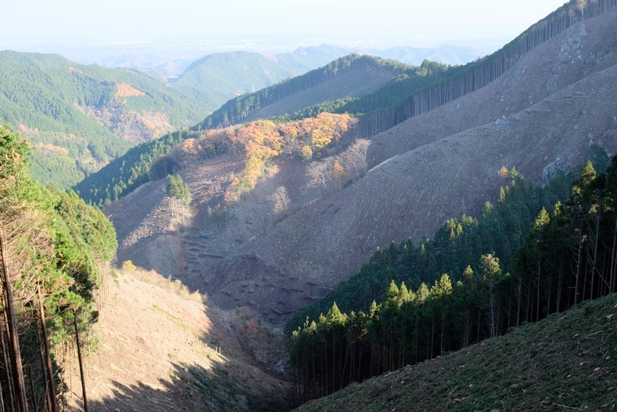 谷一面が伐採の最中だった。