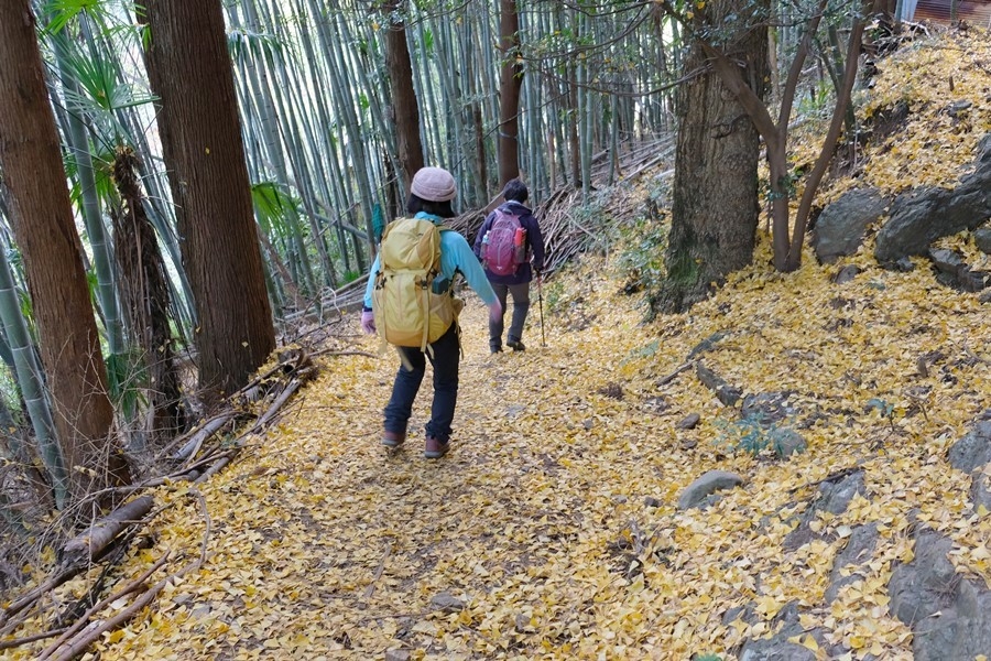 やっと御嶽駅の上にある慈恩寺に出る。銀杏の落ち葉が山道に広がって滑りそうだ