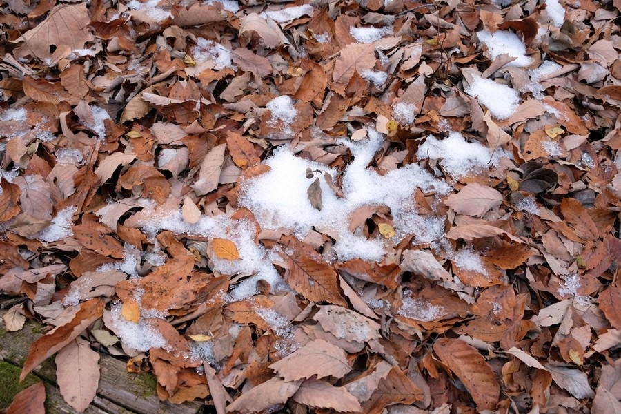 足元には残雪があった。