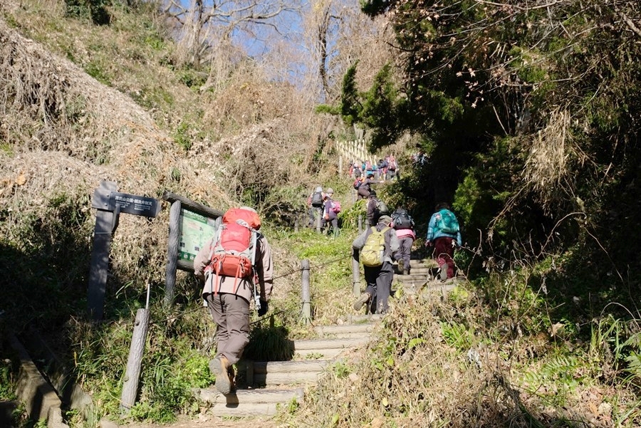 ハイキング入口の階段を登る。