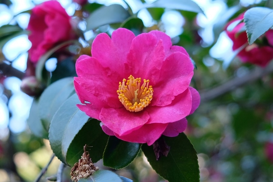 更に途中で山茶花(サザンカ)もきれいに咲いている。(木の下には花びらが散っているので山茶花)