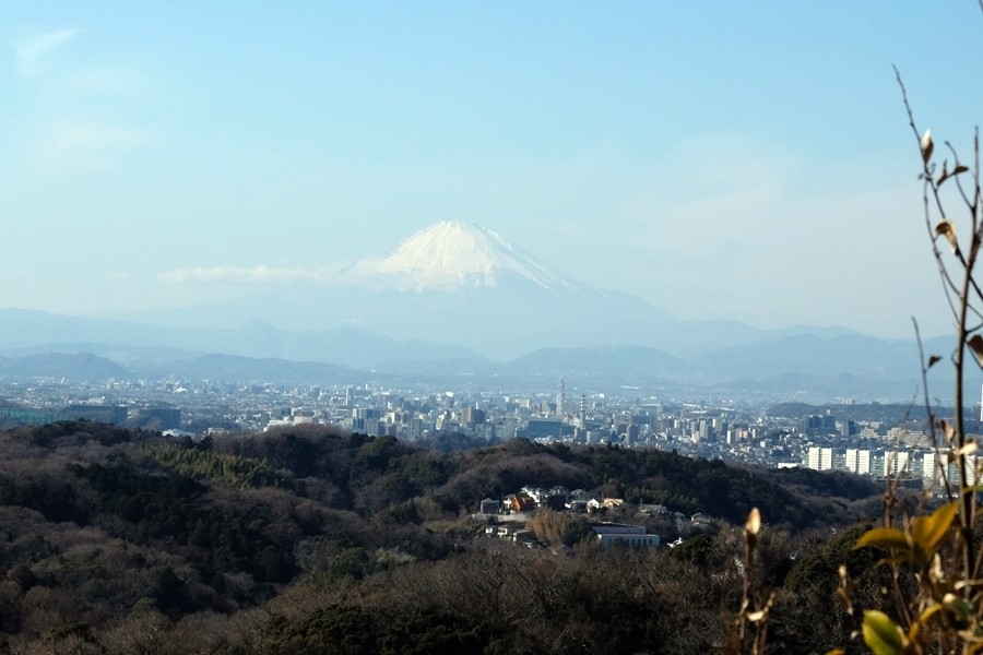 その建長寺からの登りきった道と合流地点で昼食とする。富士山が見える