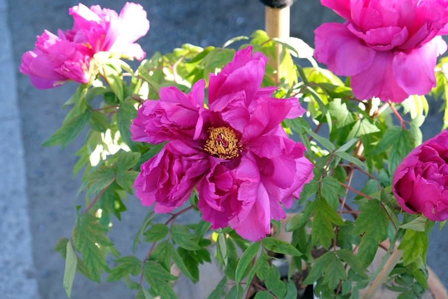 牡丹園の入口には客寄せに花が置かれている。