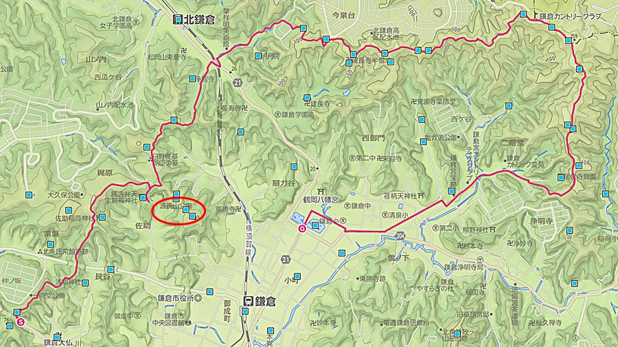 ※結局源氏山には登らず通過(銭洗弁天から化粧坂を通って、頼朝像の先に山頂)