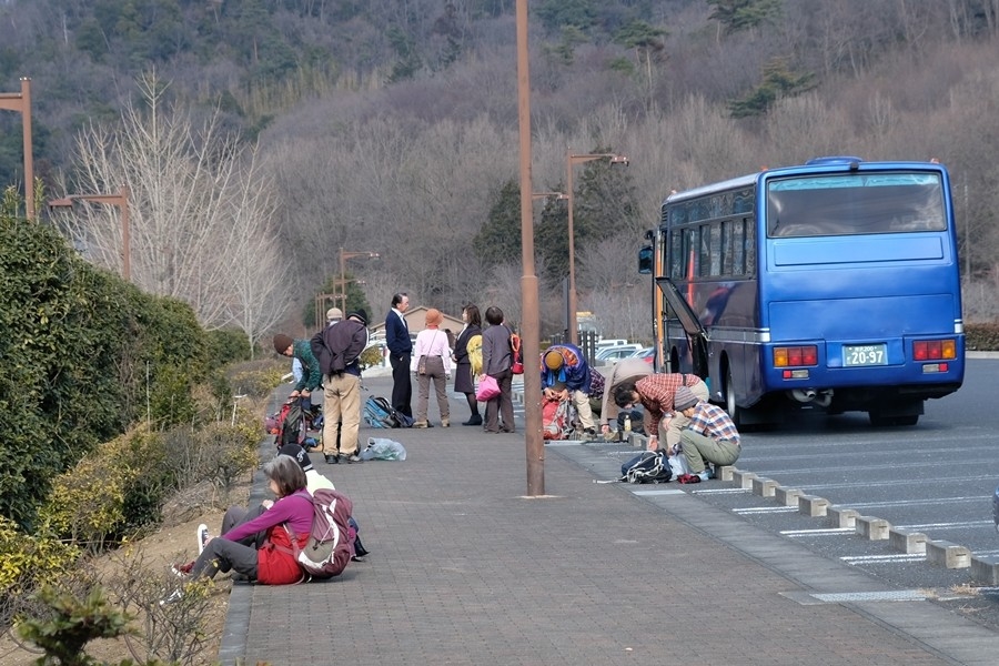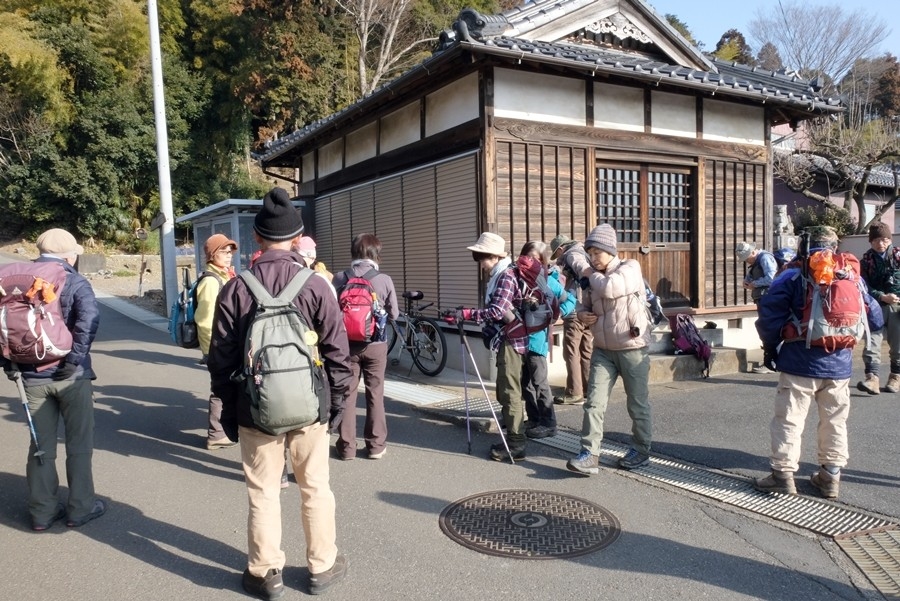 8:45分頃予定より早く客人(まろうど)神社前に到着し、ストレッチで体をほぐす。