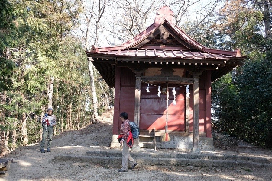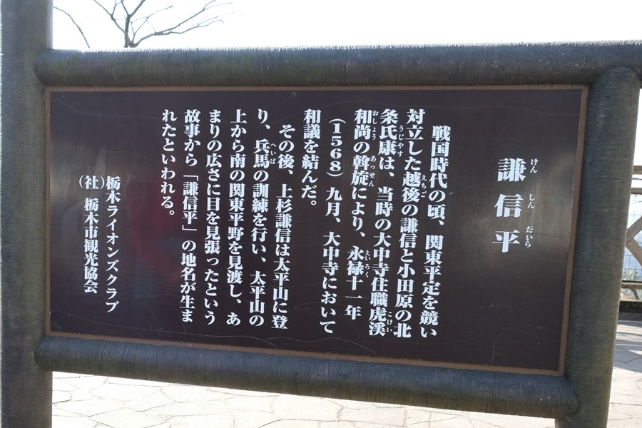 その上にあった謙信平展望台(関東平野が一望できるがこの日は霞んでいた)