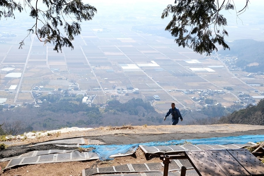 ハンググライダーの出発点があり、準備中だったので着陸地点方面を覗かせてもらった。