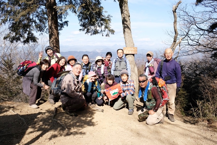 11時に晃石山着、後方の日光連山をバックに記念撮影