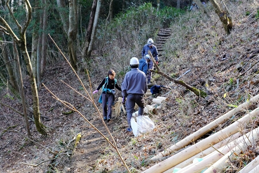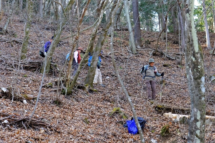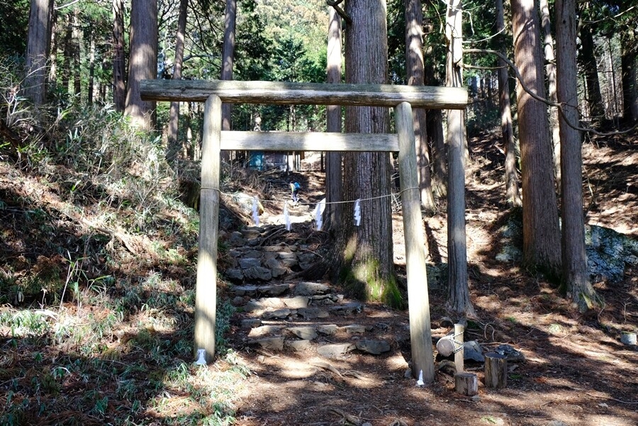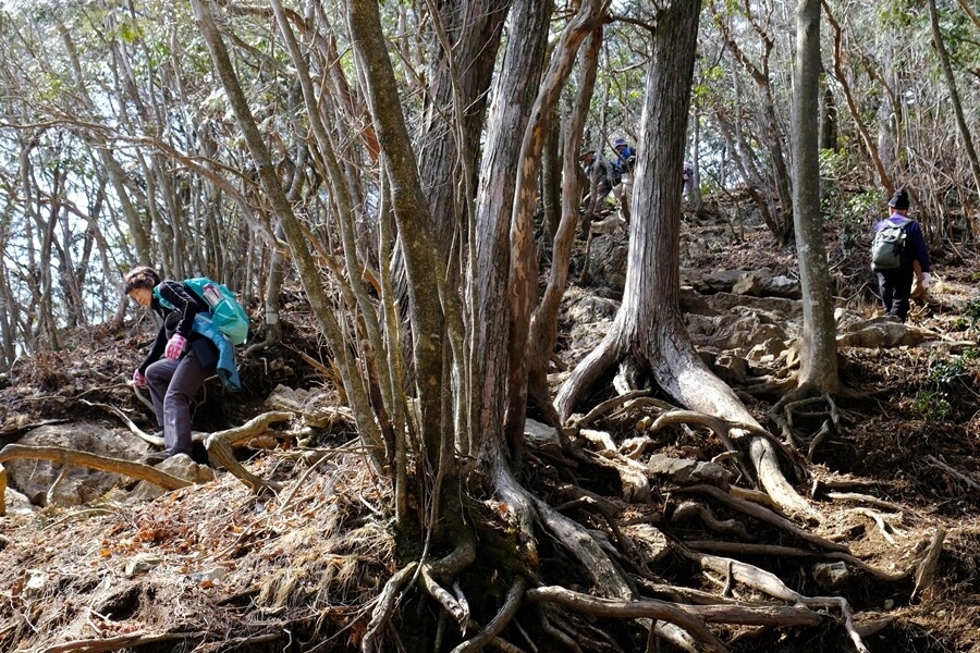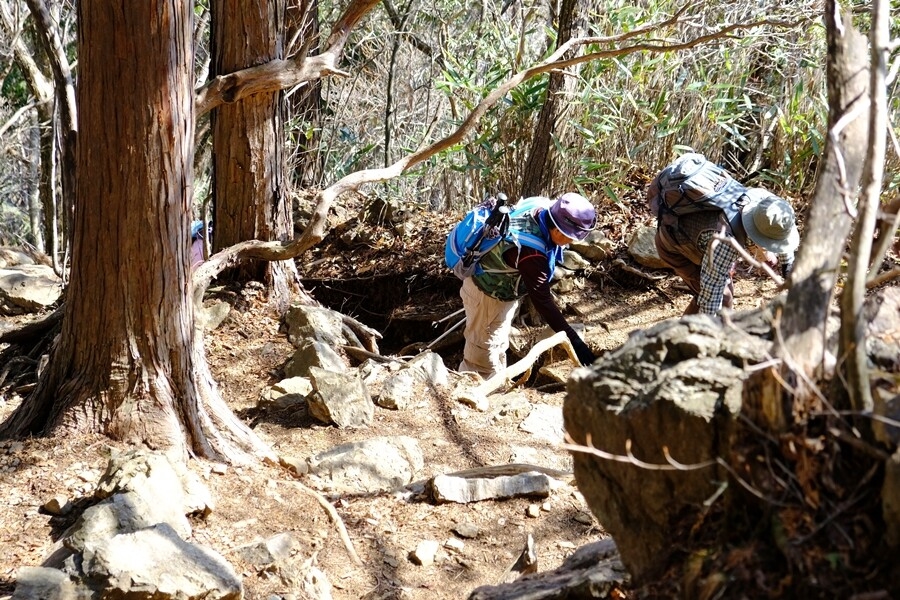 神社裏の急な登りを行く