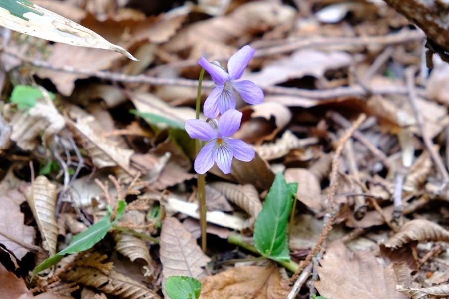 ここから結構な斜度の山道を進む足元のスミレに癒やされながら