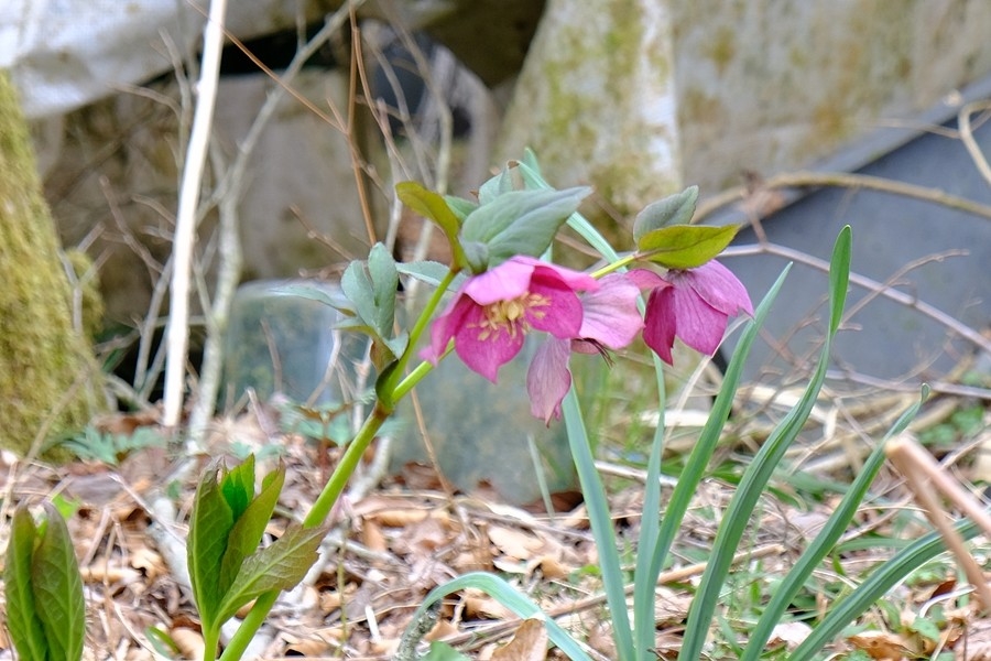 昔茶屋らしきものがあったのだろうか?廃屋の前にクリスマスローズが咲いていた。