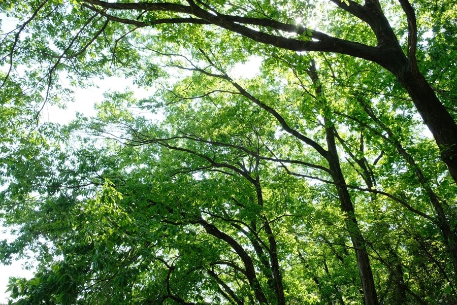 下りの道になり、大分楽になる。楓の緑がいい