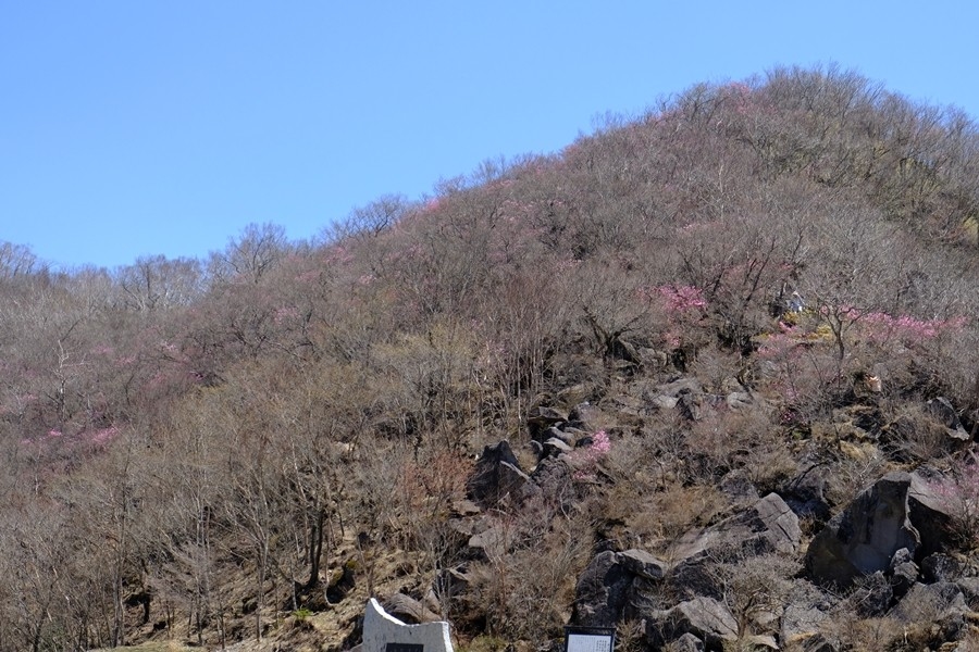 あちこちにアカヤシオがいい感じで咲いている。