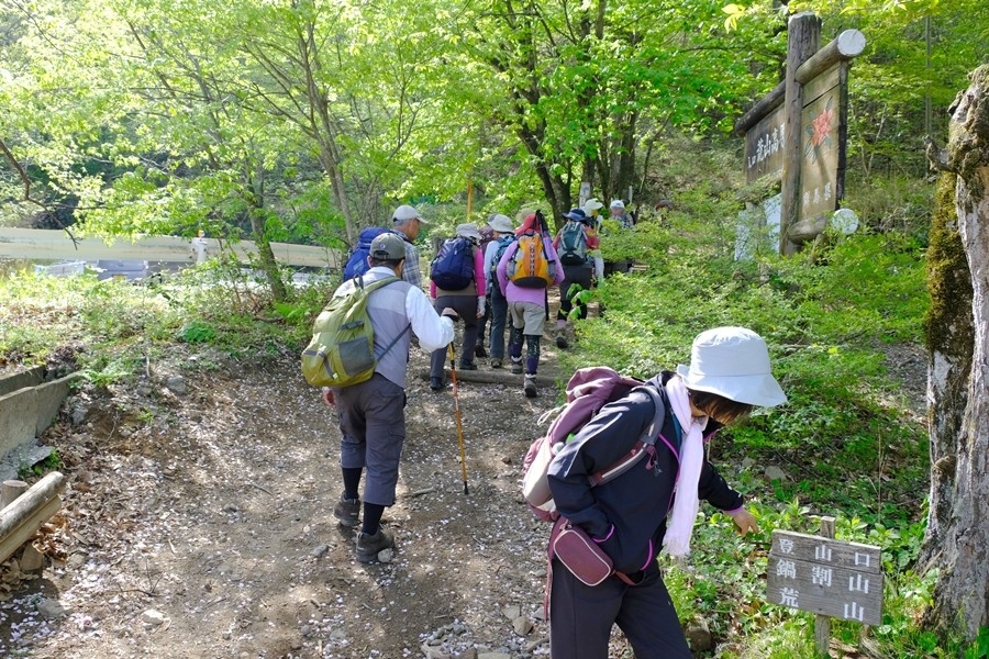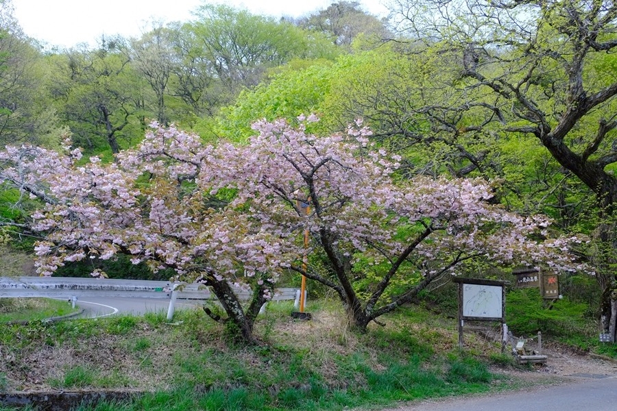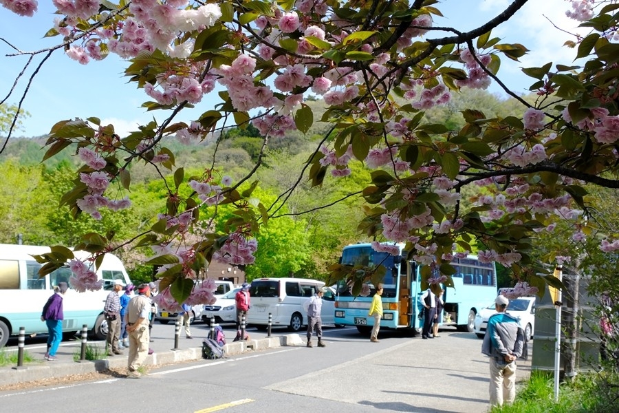 8:00分 姫百合駐車場着、登山口の八重桜が満開