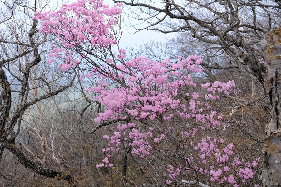 登山道脇にもアカヤシオが見えてきた