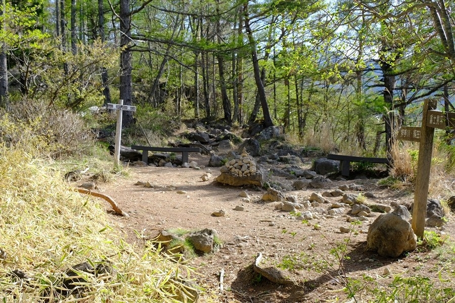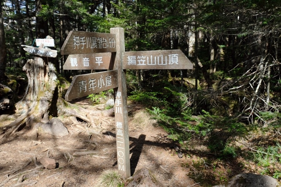 ここは、編笠山山頂へ行くコースと青年小屋経由で権現岳へ行くコースの分岐点