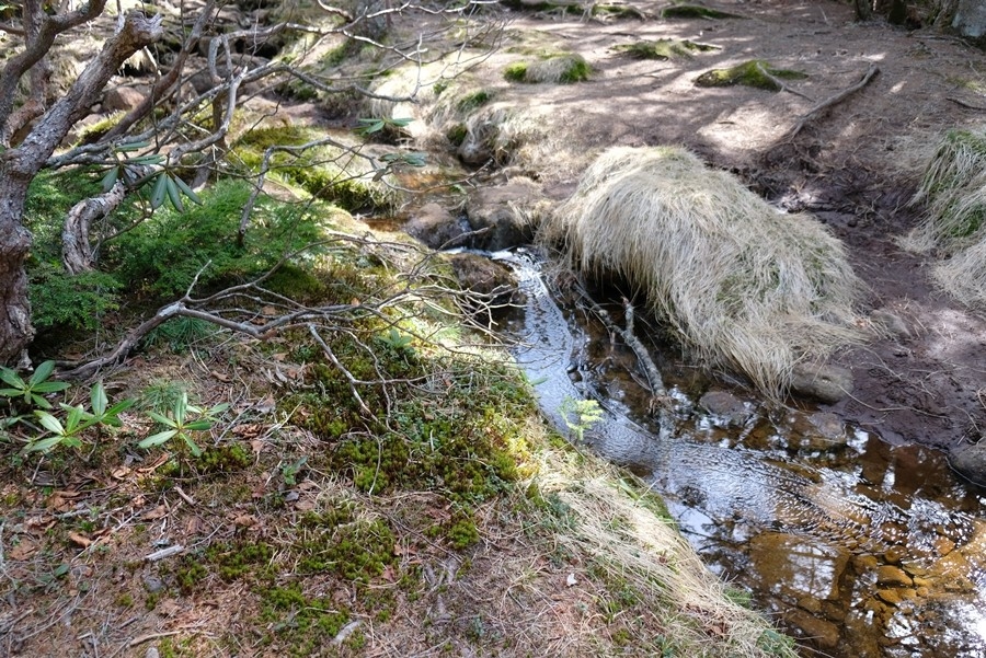 乾燥した山を上がってきてこんな高い所に水が湧き出すように川になっている。