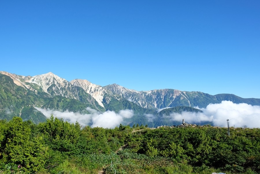 ウサギ平に上がると白馬三山がくっきり見えた。
