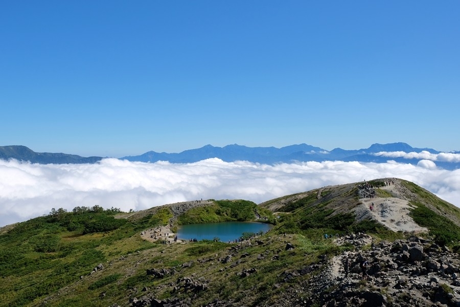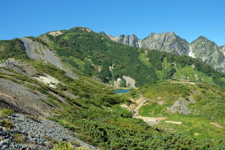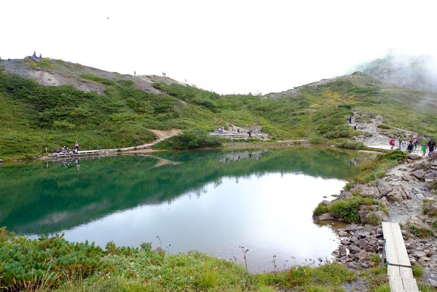 二年前の五月に来た時は雪に埋もれていた八方池も、きれいな水をたたえていた。
