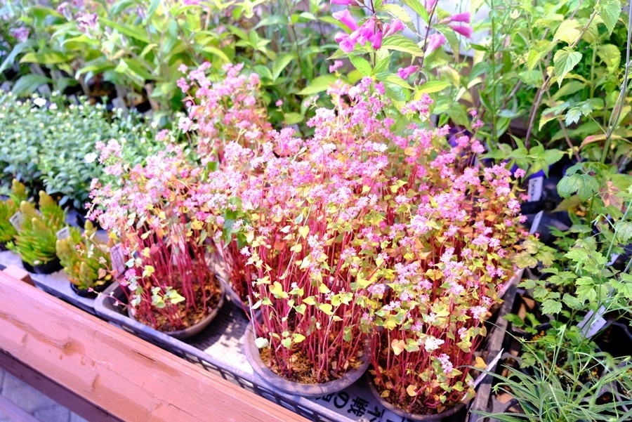 ここには山野草の苗が売られていた。赤いものは、そばの花