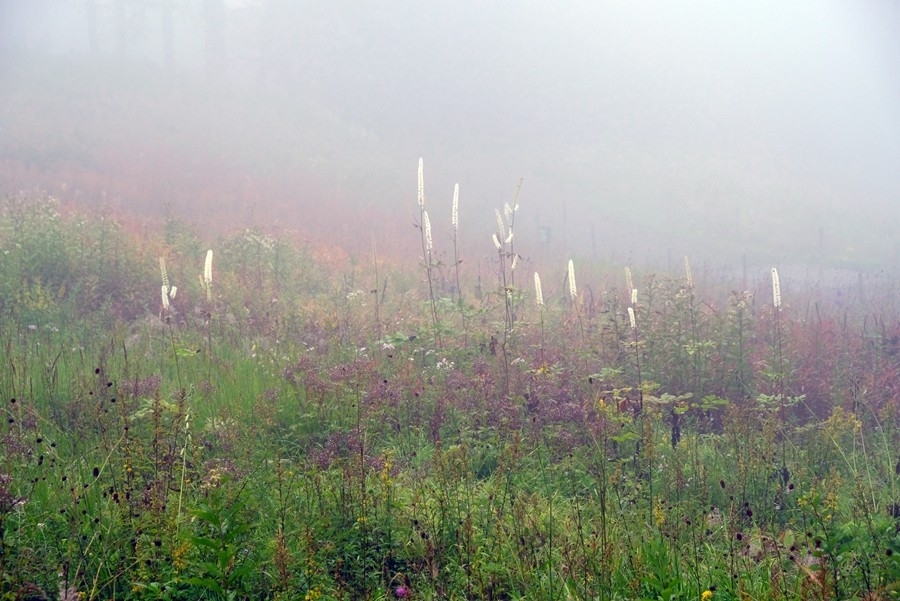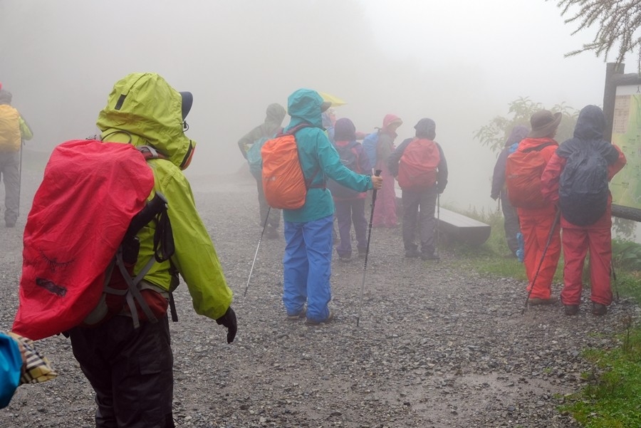 何も見えないので、予定のコースを大幅に短縮して湿原~花畑~山頂の往復のみとした。