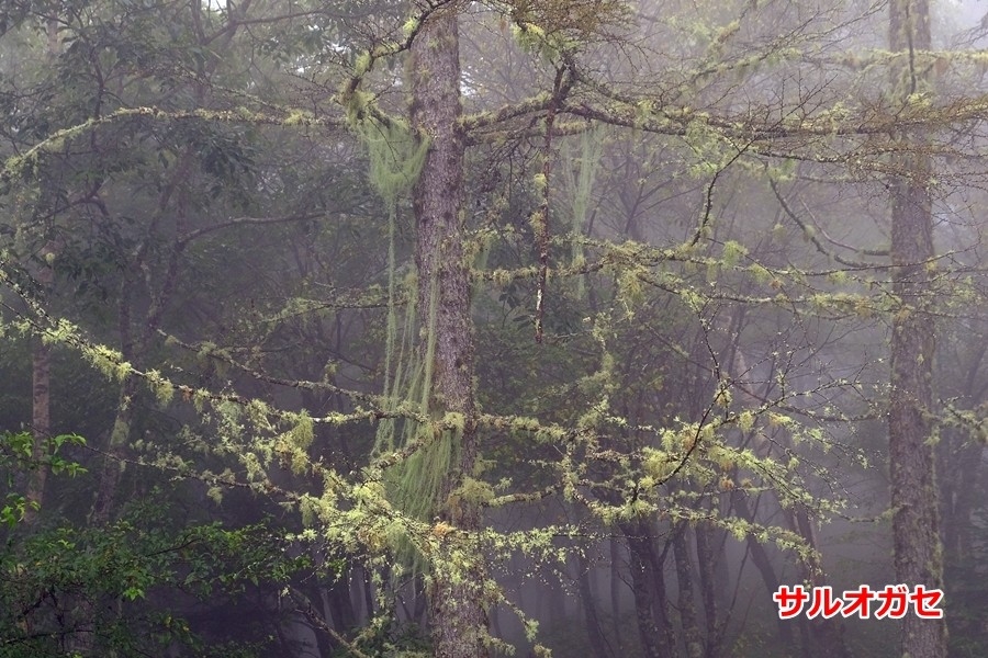 カラマツの木にはサルオガセがびっしりで幻想的だ。