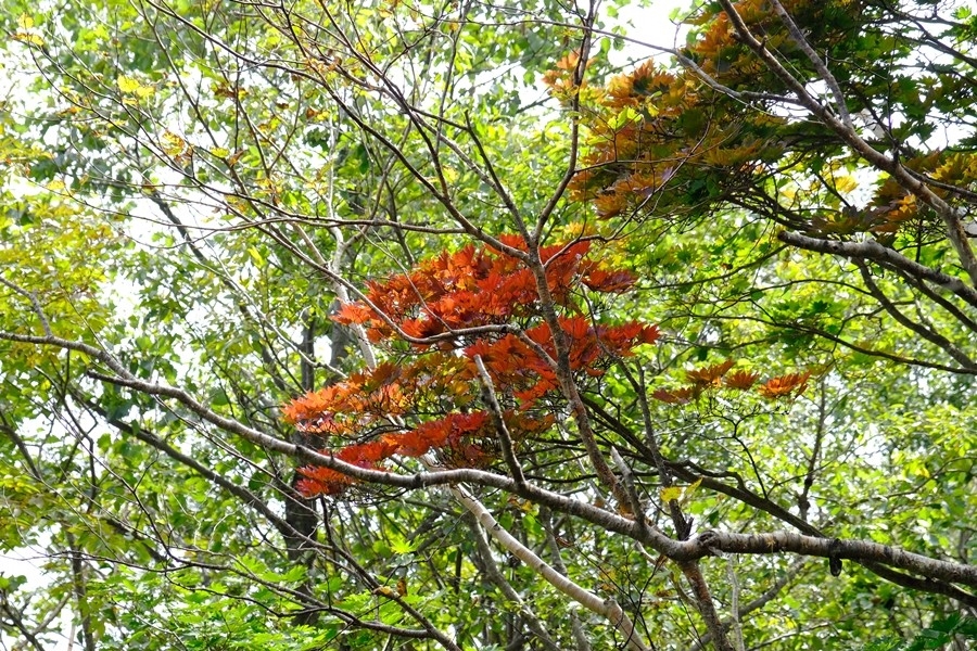 ここから道は緩やかになり、紅葉の走りも見えてきた。