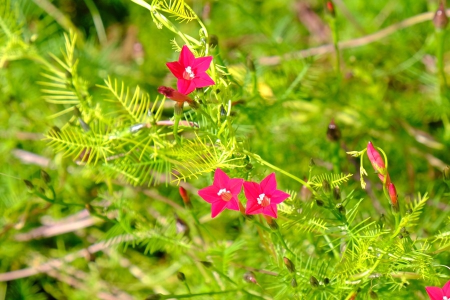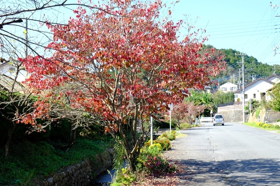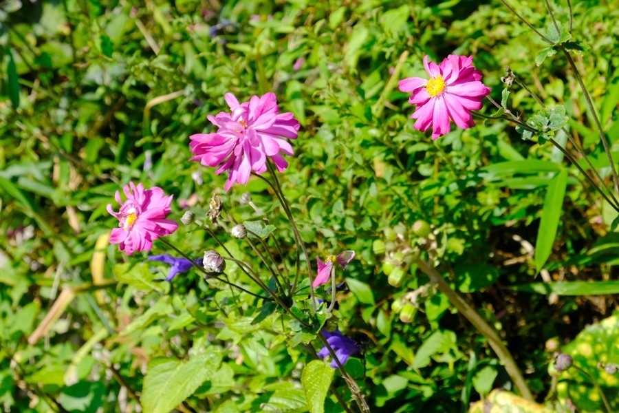 舗装道路は日差しが暑い。けれど風は涼しい状況で道端の花に癒される。