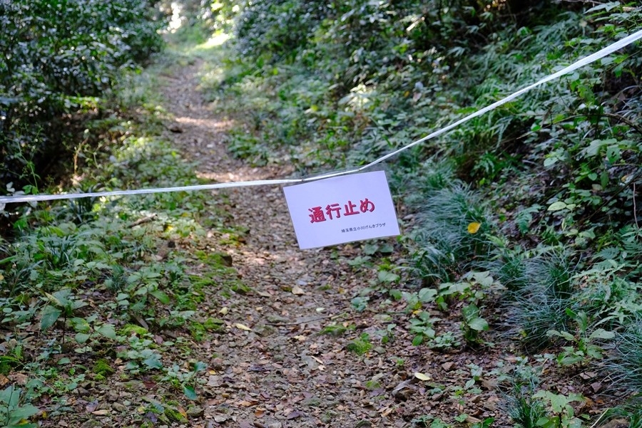 さて、行こうかと思ったが、看板をよく見るとなんと「この先、ハイキングご遠慮ください」と