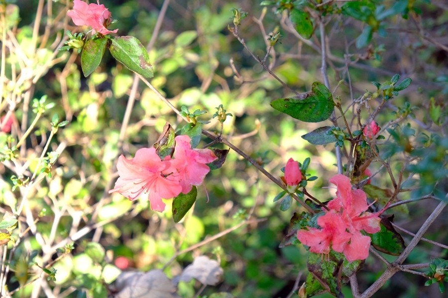 山名板の直ぐ脇のツツジが狂い咲きしている。今年はやっぱり変だ。