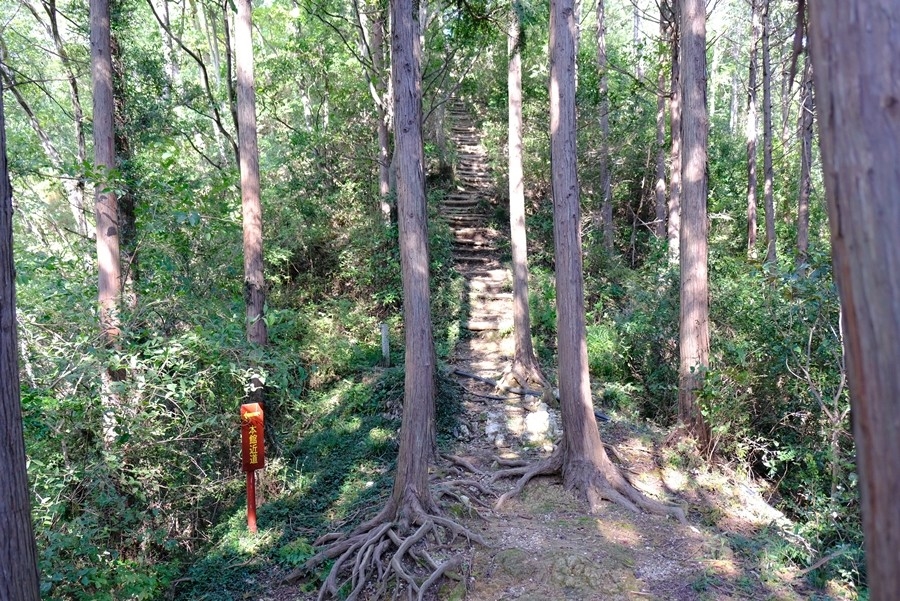 金勝山手前の急階段。手前には各方面への案内が多数ある。
