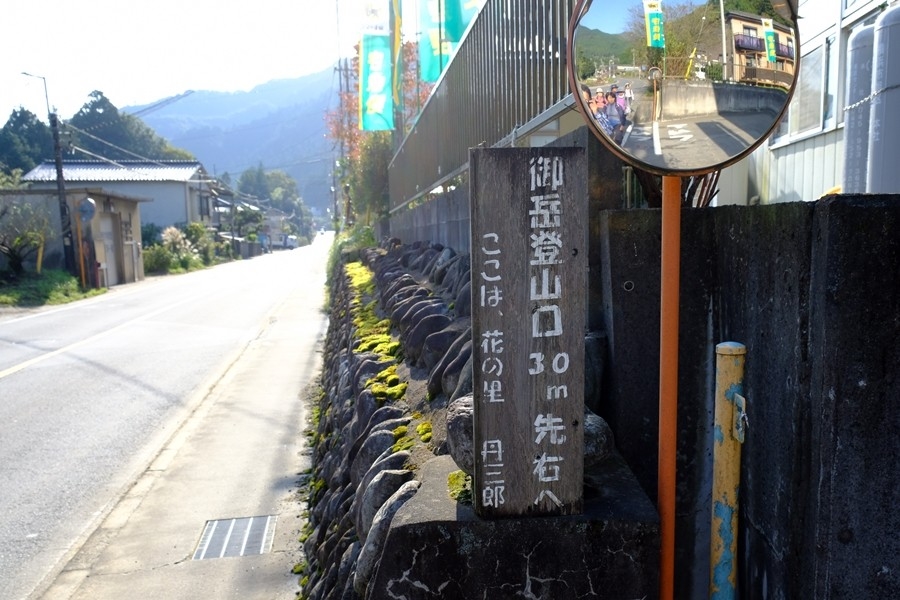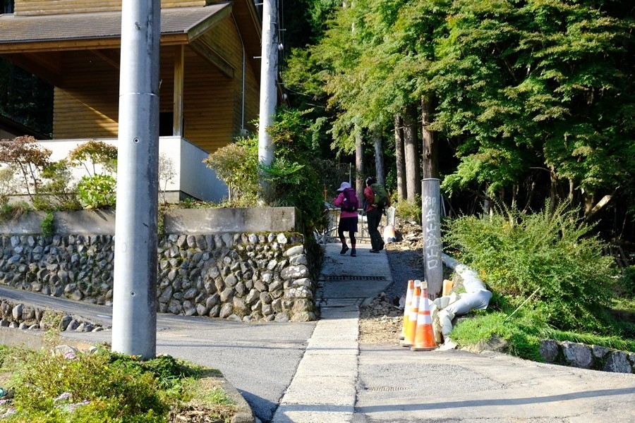 9:00分登山口への表示地点へ、ここで吉野街道と別れ住宅の間を進む。